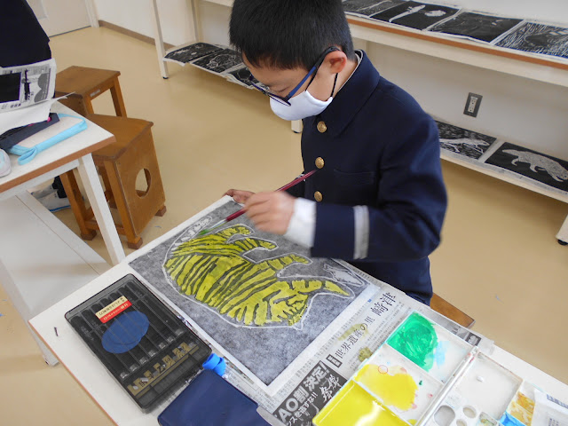 版で表そう!③ (2年生:ステンシル版画と4年生:木版画)